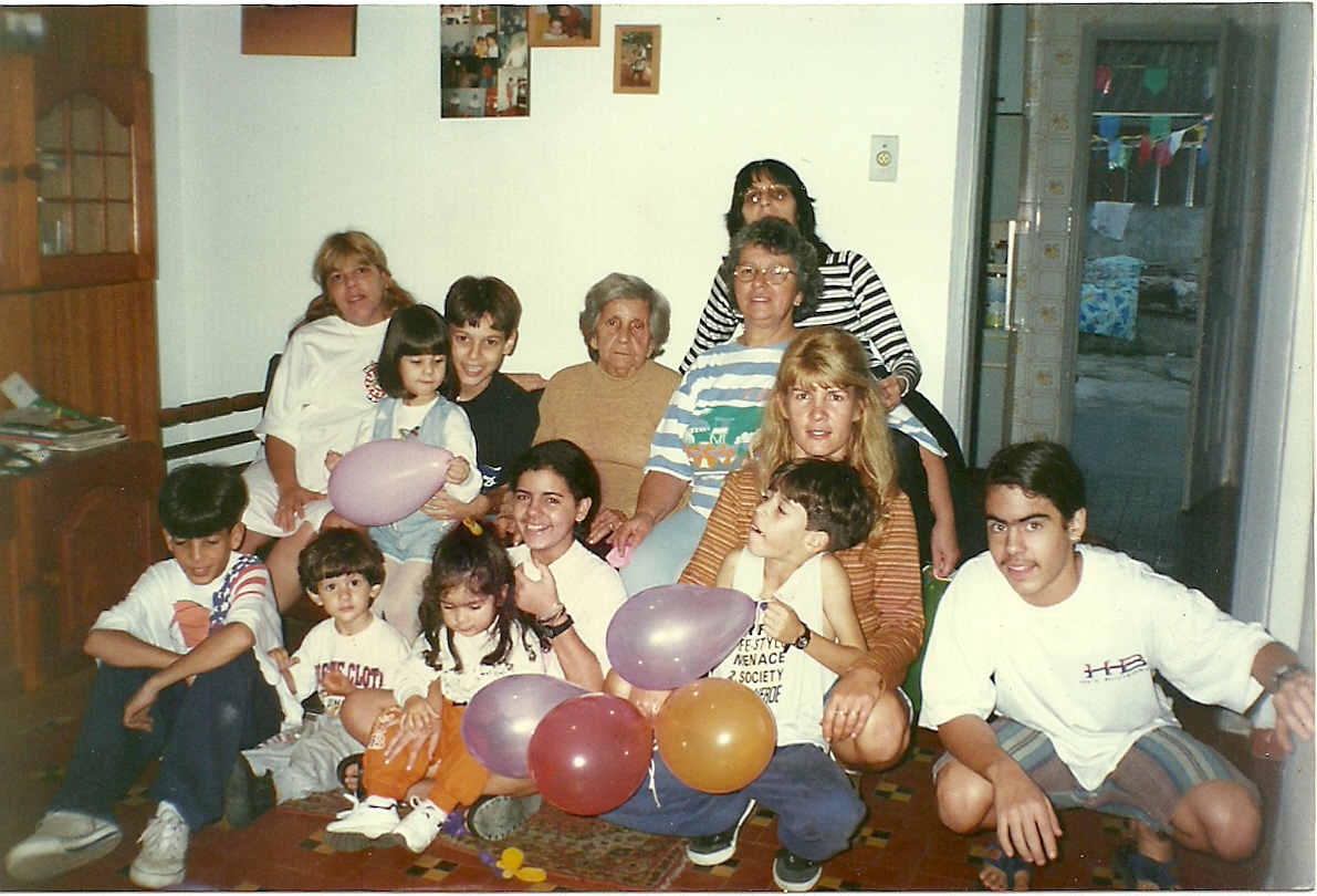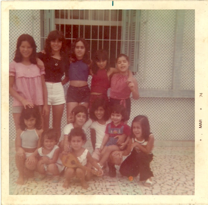 Embaixo: Lilian, Delmirinha, Ivoninha(com violão), Willian,Gilson (fazendo paz e amor), Helena no colo do Gilson e Kátia.