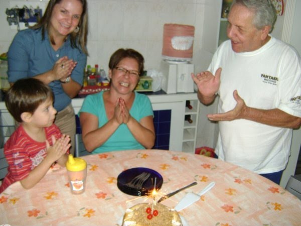 No meu aniversário, não lembro se foi esse... Na ora fatídica de cortar o bolo..